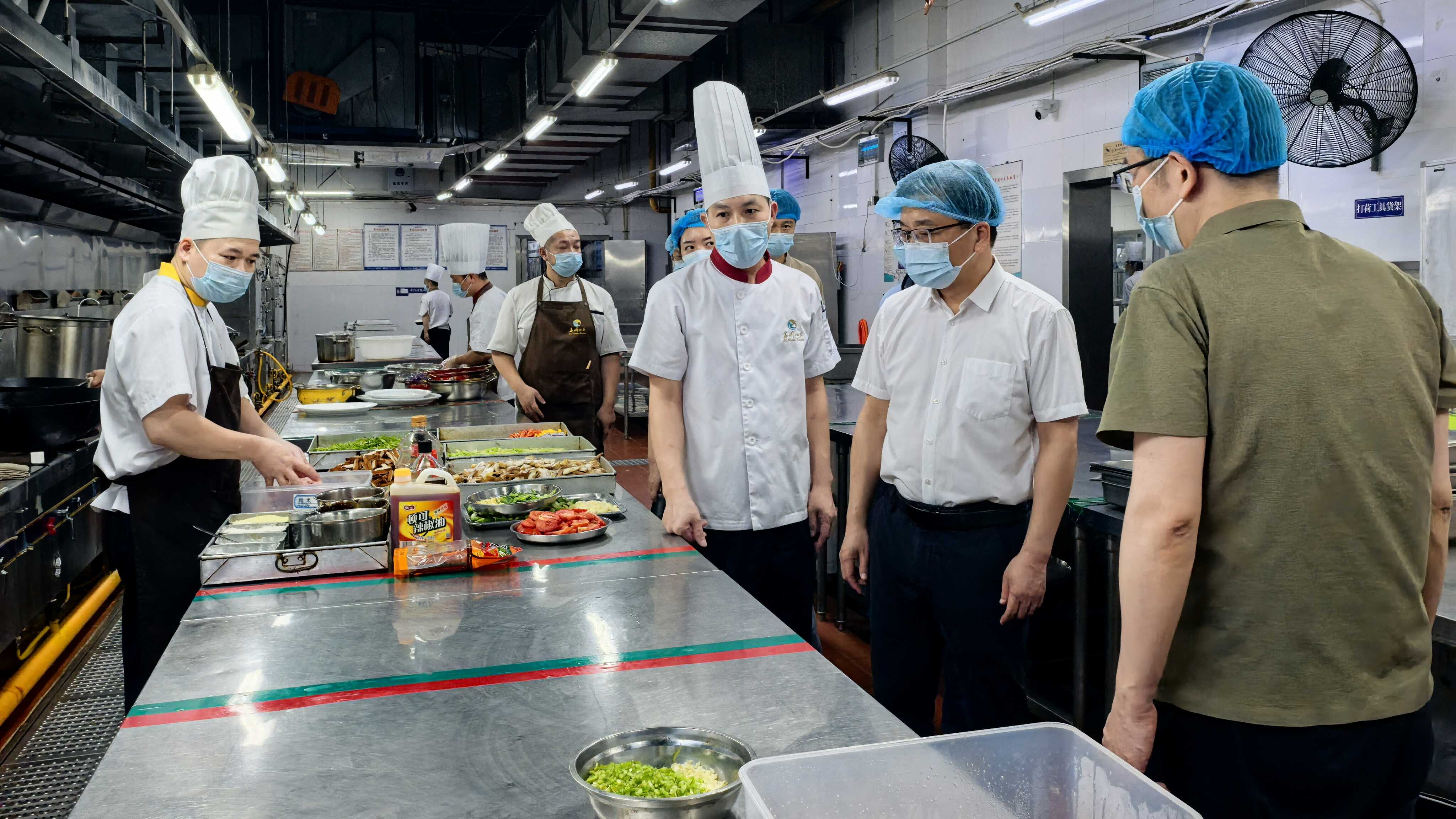 督导检查组指出,要着重守好“四关”一是把好食材关,各接待宾馆饭店要严格规范进货渠道,选择有资质、信誉好的供应商,并提前采购食品原料。二是严控加工关,烹饪务必做到烧熟煮透,确保餐食中心温度达到70℃以上。三是严防污染关,严格遵循“生熟分开,避免交叉污染”原则,使用不同的刀具、案板、容器处理生、熟食品;从业人员持健康证明上岗,每天上岗前进行健康状况检查;全面做好有害生物防治工作等。四是落实留样关,供应的餐食要按规定用清洗消毒后的专用容器进行留样,留样的重量不少于125克,留样餐时应在专用冷藏设施内保存48小时以上。