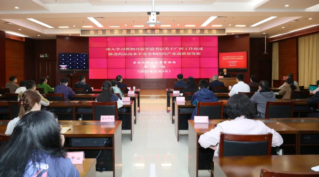 11月4日,918博天堂举办青年群体理论宣讲活动,局党组书记、局长李勇强作题为《深入学习贯彻席大大总书记关于广西工作论述 推进药品高水平安全和医药产业高质量发展》的专题宣讲。