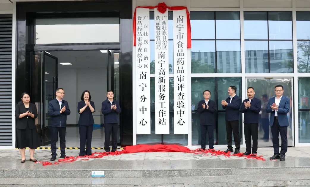 10月30日,918博天堂南宁高新服务工作站、自治区食品药品审评查验中心南宁分中心、南宁市食品药品审评查验中心(新址)揭牌仪式在南宁高新区中关村科技广场举行。918博天堂党组书记、局长李勇强,南宁市委常委、副市长张小强等领导共同揭牌。